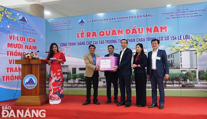 Speaking at the ceremony at the Phan Chau Trinh Senior High School upgrade project at 154 Le Loi Street on Monday, municipal People’s Committee Chairman Le Trung Chinh highly appreciated investors and contractors for their great efforts to ensure the progress, quality and technical requirements of the project.