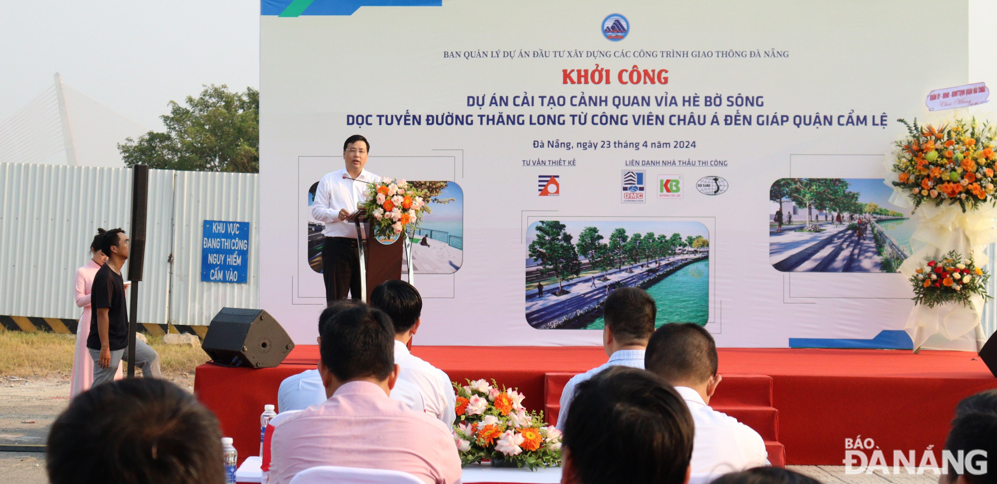 The Da Nang Traffic Construction Investment Project Management Board, on Tuesday, broke ground on a project to embellish landscape of sidewalks and riverbanks along a section of Thang Long Street between its intersections with the Asia Park to the border of Cam Le District, with total investment of more than VND 44 billion.