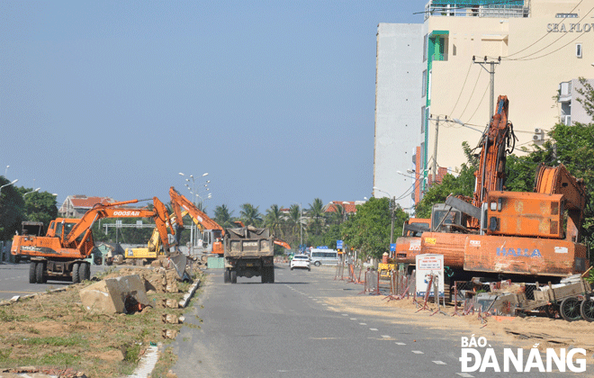 The construction of a separate wastewater collection system and sewer lines to transfer rainwater to the Han River for the basin from Ho Xuan Huong Street to Da Nang’s border with Quang Nam Province is one of the projects to be accelerated in the second quarter of 2022. Photo: THANH LAN
