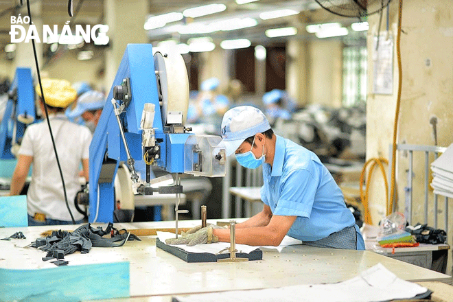 Da Nang-based enterprises have actively implemented electricity saving solutions. IN THE PHOTO: Workers at the Hoa Tho Textile and Garment Corporation. Photo: M.Q