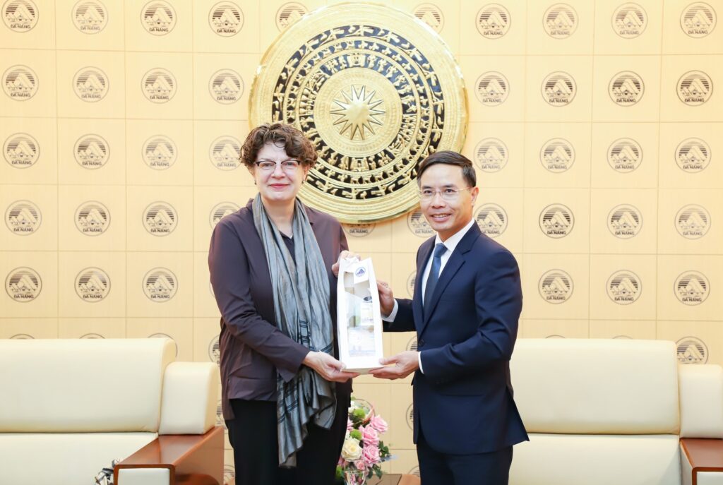 Chairman of Da Nang People’s Committee Pham Duc An presented a souvenir to Ms. Helga Margarete Barth. Photo: NGOC PHU