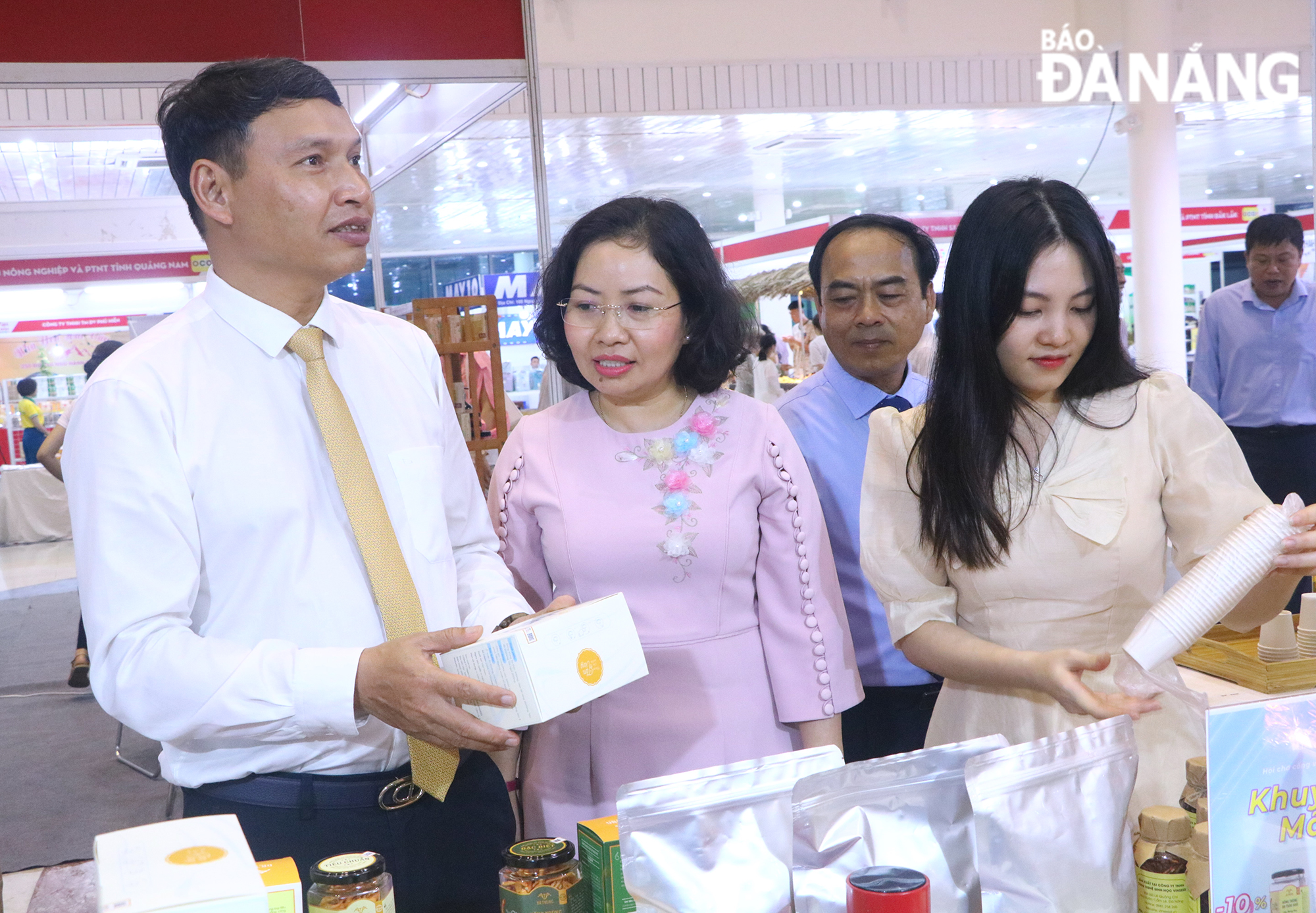 Vice Chairman of the Da Nang People’s Committee of Ho Ky Minh (left) and delegates visit the fair, June 6, 2023.