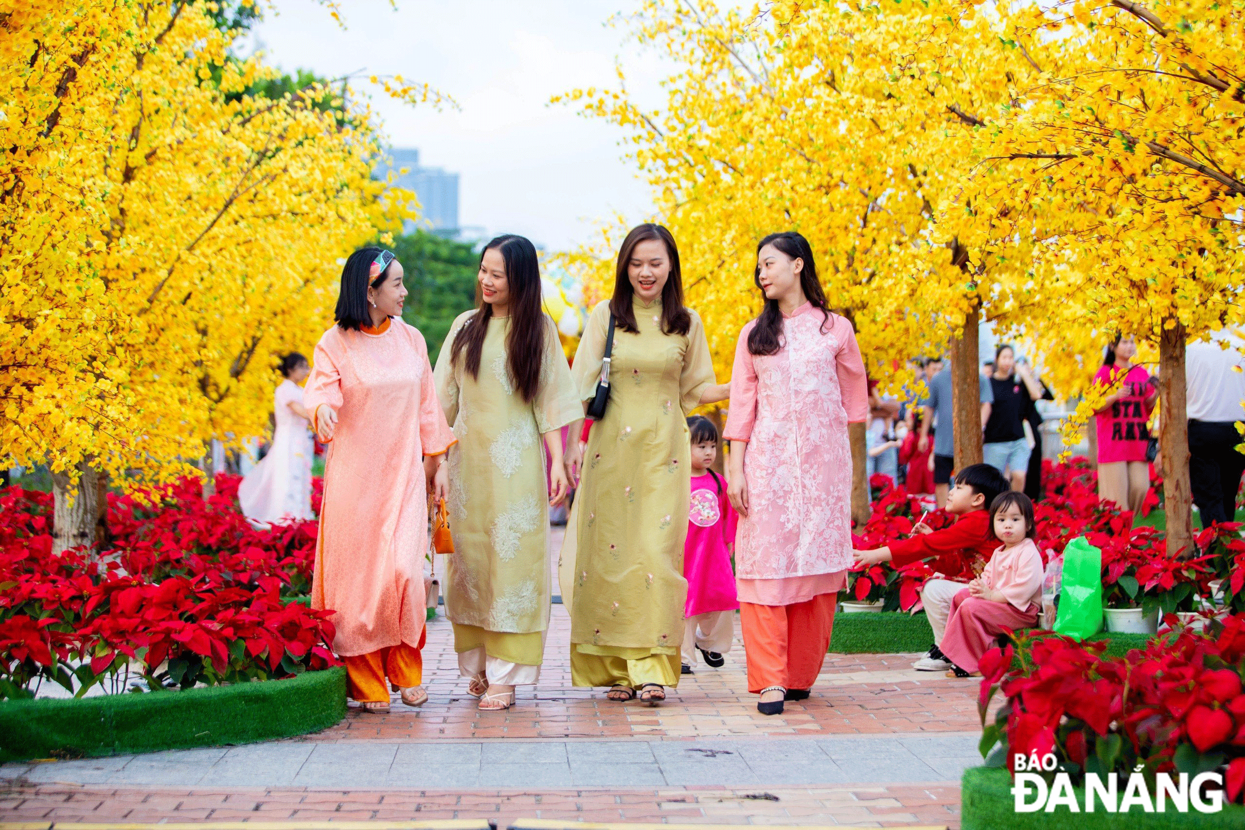 Tourists are seen visiting the Da Nang Spring Flower Street 2024. Photo: BAO LAM