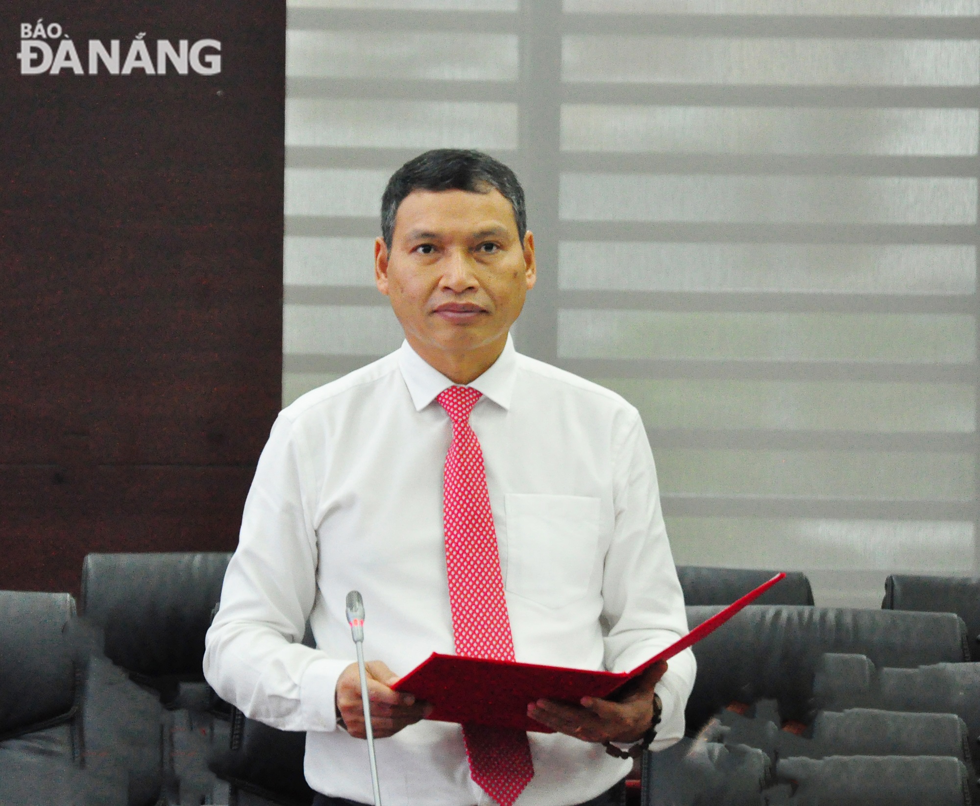 Vice Chairman of the Da Nang People’s Committee Ho Ky Minh delivering a welcome speech at the signing ceremony. Photo: THANH LAN.