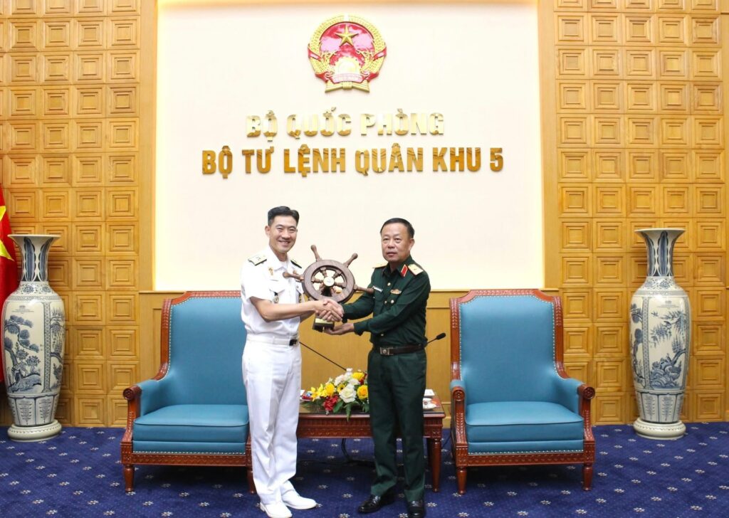 Rear Admiral Hong Sang Yong and senior officers also paid a courtesy visit to the 5th Military Region Command in the same afternoon. Major General Nguyen Quoc Huong, Deputy Commander of the 5th Military Region, chaired the reception.