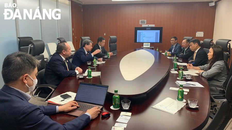 As part of his business trip to Japan, on March 31, Da Nang People’s Committee Vice Chairman Ho Ky Minh (2nd, right) visited and worked with the leaders of Mitsubishi Corporation to directly promote the investment attraction in Da Nang. Photo courtesy of IPA Danang
