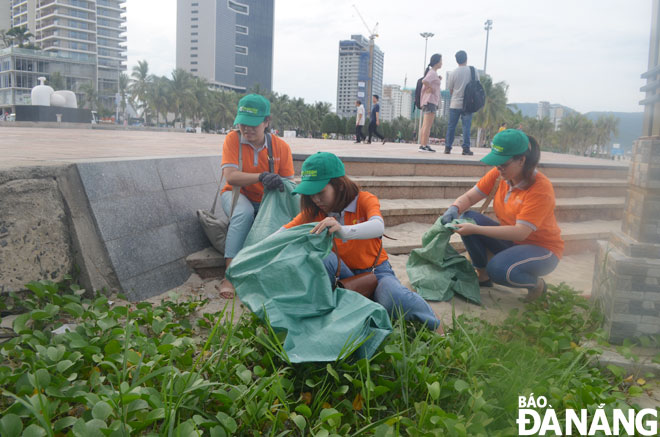 are seen joining cleanups on Pham Van Dong Beach, Son Tra District.