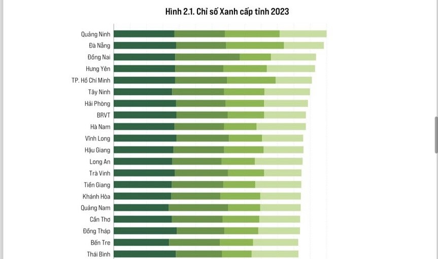 Regarding the PGI rankings in 2023, Quang Ninh had the highest total score of all 4 component indexes. It was followed by Da Nang, Dong Nai, Hung Yen, and Ho Chi Minh City.