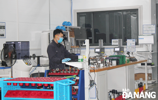 The Da Nang Investment Forum 2022, slated to be held at the end of June, will be an opportunity for the Da Nang leaders to receive advice, suggestions, recommendations and proposals to continuously improve the investment and business environment. Employees are pictured working at the Da Nang Hi-tech Park -based Universal Alloy Corporation Viet Nam Co., Ltd (UAC). Photo: P.LAN