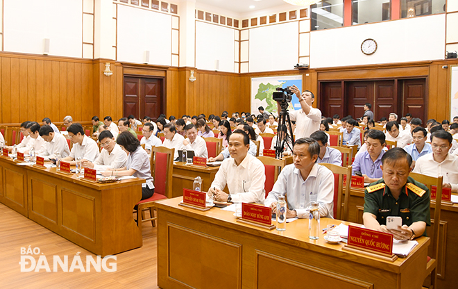 Municipal Party Committee Deputy Secretary cum municipal People’s Council Chairman Luong Nguyen Minh Triet addressing the Friday meeting