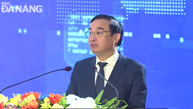Chairman of the Da Nang People’s Committee Le Trung Chinh delivering his speech at the conference. Photo: M.Q