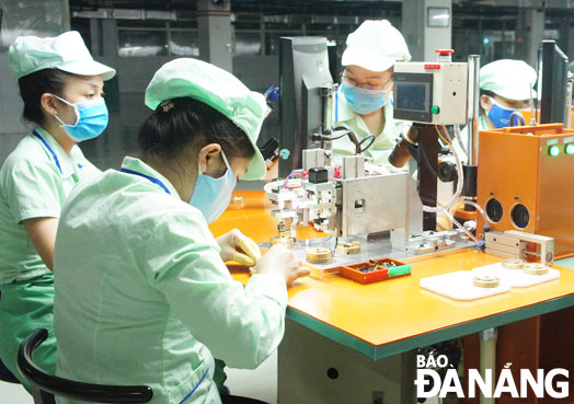 and non-state enterprises. Here is the inside of the Foster Electronics Da Nang Co., Ltd. in Hoa Cam Industrial Park, Cam Le District.