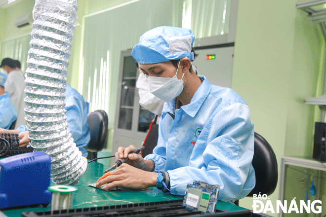 In 2022, Da Nang enjoyed a rapid economic recovery from the COVID-19 crisis. Picture is taken at the Trung Nam Electronics Manufacturing Services (Trungnam EMS) located in the Da Nang Hi-Tech Park. Photo: MAI QUE