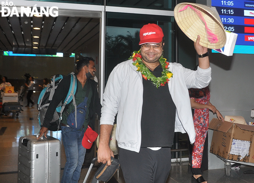 Indian guests are delighted to be welcomed at the Da Nang International Airport. Photo: THU HA