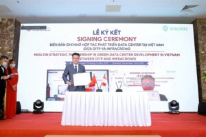 Director of Đà Nẵng IT Park company, Nguyễn Anh Huy, signs a Memorandum of Understanding...