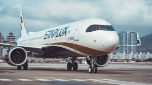The first flight of Starlux Airlines carrying 171 passengers from Taipei (China) landed at Da...