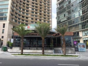 The unlicensed shopping area in front of the Bạch Đằng Hotel-Hilton Luxury Apartment complex. The...