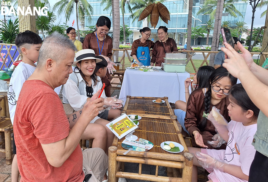 A stall to experience making ‘banh it’ (glutinous rice cakes filled with meat or green bean paste) and ‘banh ram it’ (a type of dumpling with a crispy attachment) drawing much attention from domestic and foreign tourists