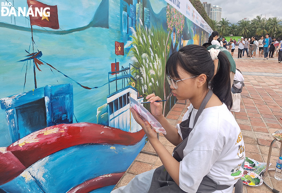 Children participating in painting activities to create a realistic painting with the theme “Da Nang and tourists draw a record together”