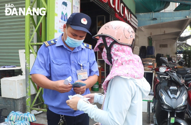 Ms Nguyen Thi Kim, a resident of Hai Chau 2 Ward, Hai Chau District, has used entry card with a QR code to the Con Market for the first time. She saved QR code on her phone, and showed it to guards staffing at this market to scan for confirmation. Her QR code scanning procedures were done quickly by guards here, and they accepted her entry to this market.