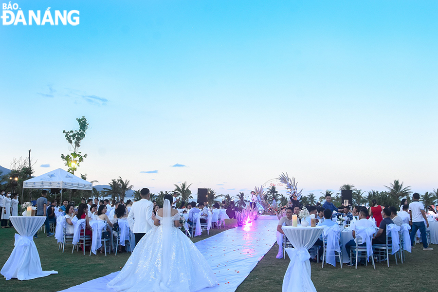 The need for wedding tourism is being chosen by many tourists and Da Nang is also an attractive venue for many couples. Here is a scene of a wedding party held at the Furama Da Nang resort. Photo: THU HA