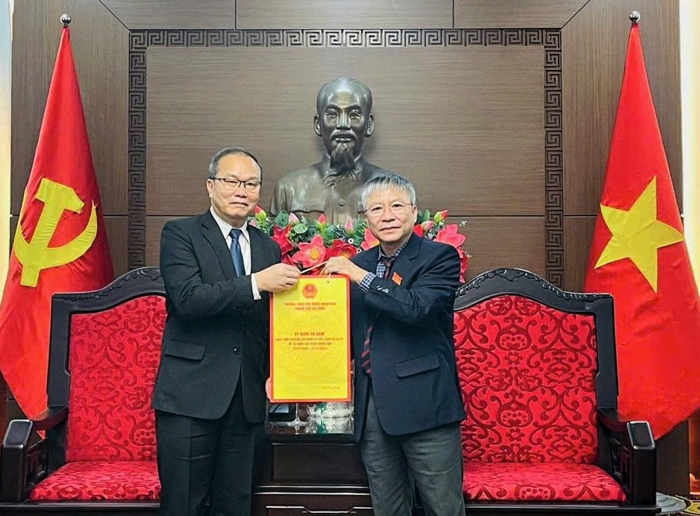 On behalf of the city’s leaders, Secretary Quang wished Mr. Souphanh Hadaoheuang good health, happiness and success in his new position at the Lao Ministry of Foreign Affairs.