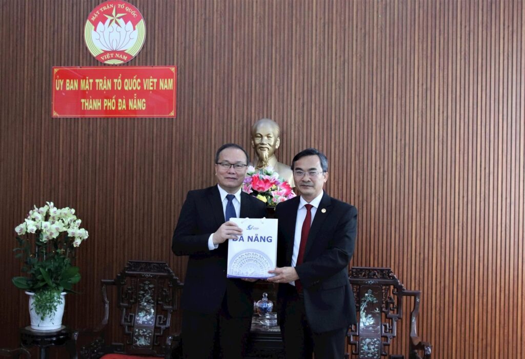 Vice Chairman of the Vietnam Fatherland Front Committee of Da Nang Nguyen Phi Hung (right) and Mr. Souphanh Hadaoheuang. Photo: TRONG HUY
