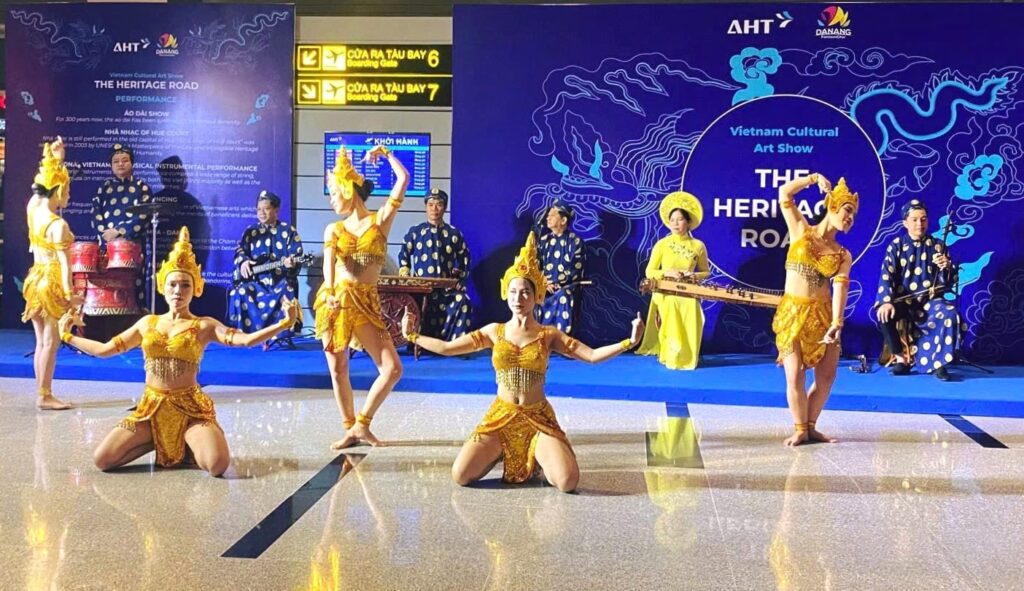 A Cham dance performance by artists from the Nguyen Hien Dinh Tuong Theater (now part of the Da Nang Traditional Arts Theater) presented for visitors at Da Nang International Airport. Photo: NGOC HA