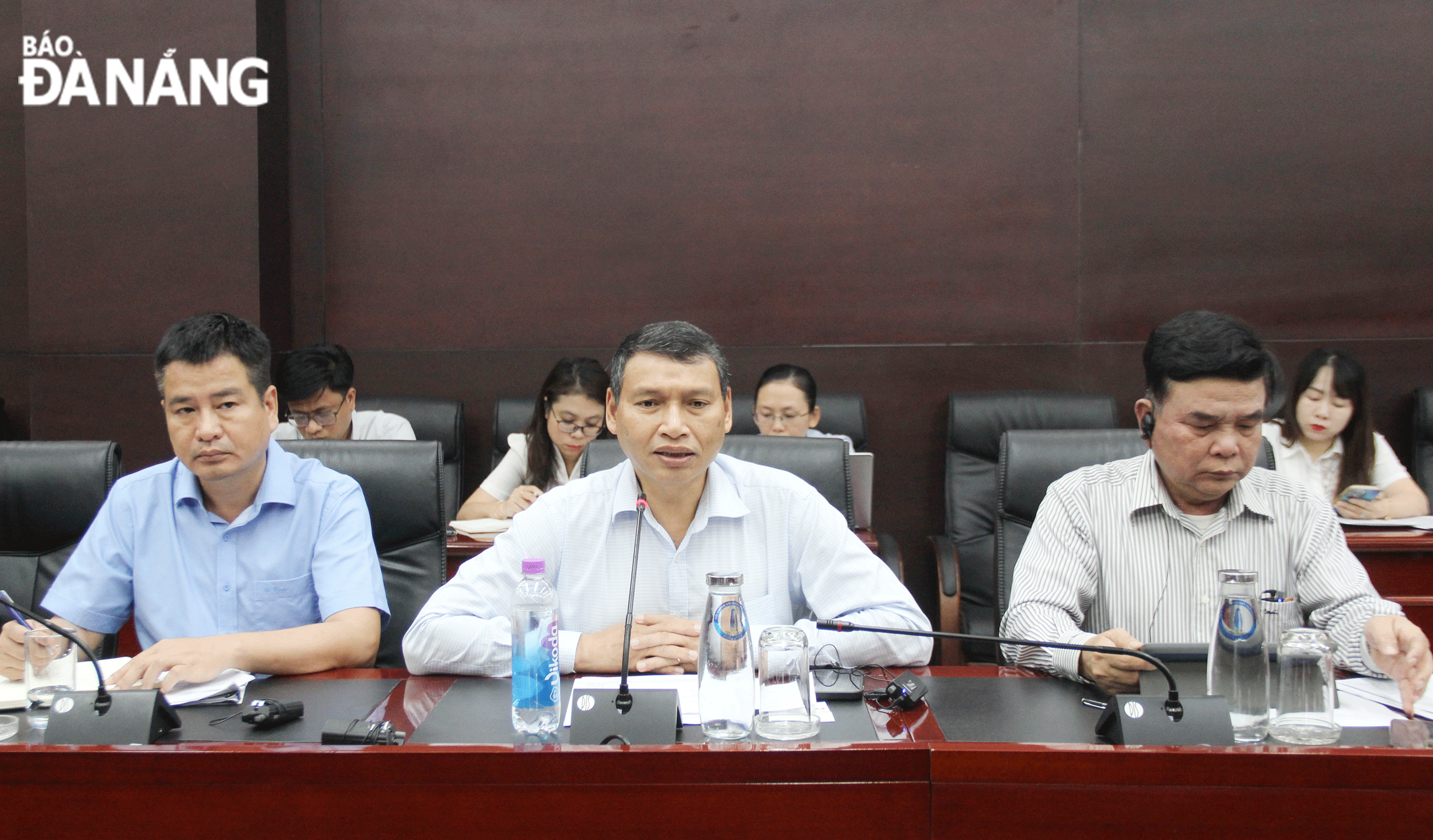 Da Nang People’s Committee Vice Chairman Ho Ky Minh (middle) meets with the working delegation on supporting the establishment of a financial centre in Da Nang, August, 6, 2024. Photo: M.Q