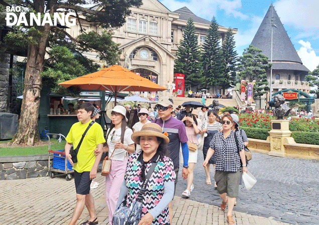 Tourist attractions in Da Nang are trying to add new products to attract more tourists. IN PHOTO: Visitors at the Sun World Ba Na Hills tourist area. Photo: THU HA