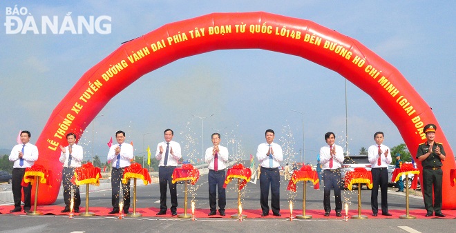 Leaders of Da Nang, and departments and agencies cutting ribbons to inaugurate the western ring road