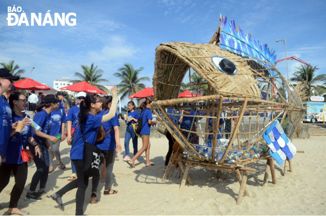 The placement of a creative sculpture featuring a Goby swallowing plastic waste in Da Nang aims to raise public awareness about the damage done by plastic materials to marine life.